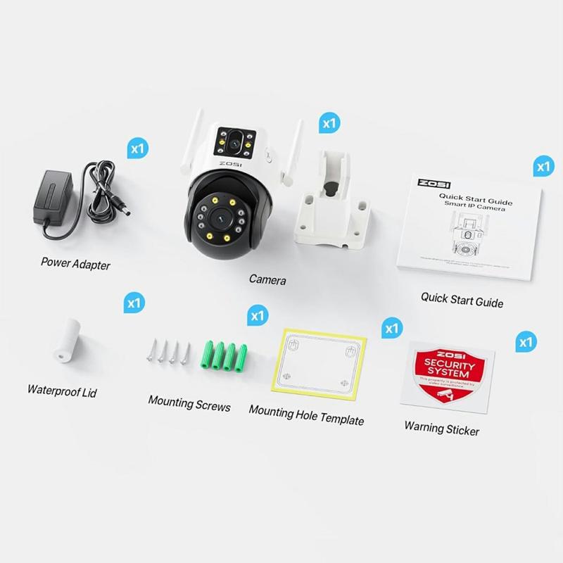 Protect driveways, gardens and shopfronts with 6 million-pixel clarity. The ZOSI C298SE pairs twin lenses with 355° pan, 140° tilt and AI vehicle + humanoid tracking, so nothing slips past its view—day or night. A weather-sealed aluminium body, colour spotlight mode and real-time talk-back make it a professional-grade guardian that installs in minutes on any 2.4 GHz Wi-Fi network.
